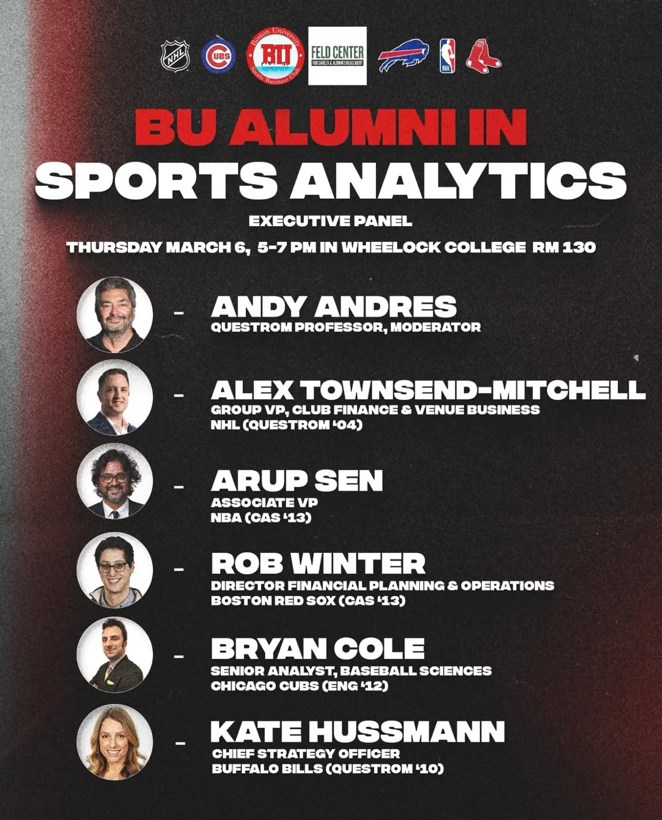 BU alumni in sports analytics panel ahead of the 2025 MIT Sloan Sports Analytics Conference